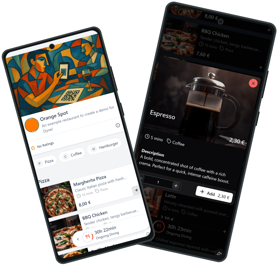 From QR code menus to real-time orders, smart menus, and customer requests, Dyne streamlines every step of dining helping restaurants, hotels, cafés, and bars save time, cut costs, and create happier guests.