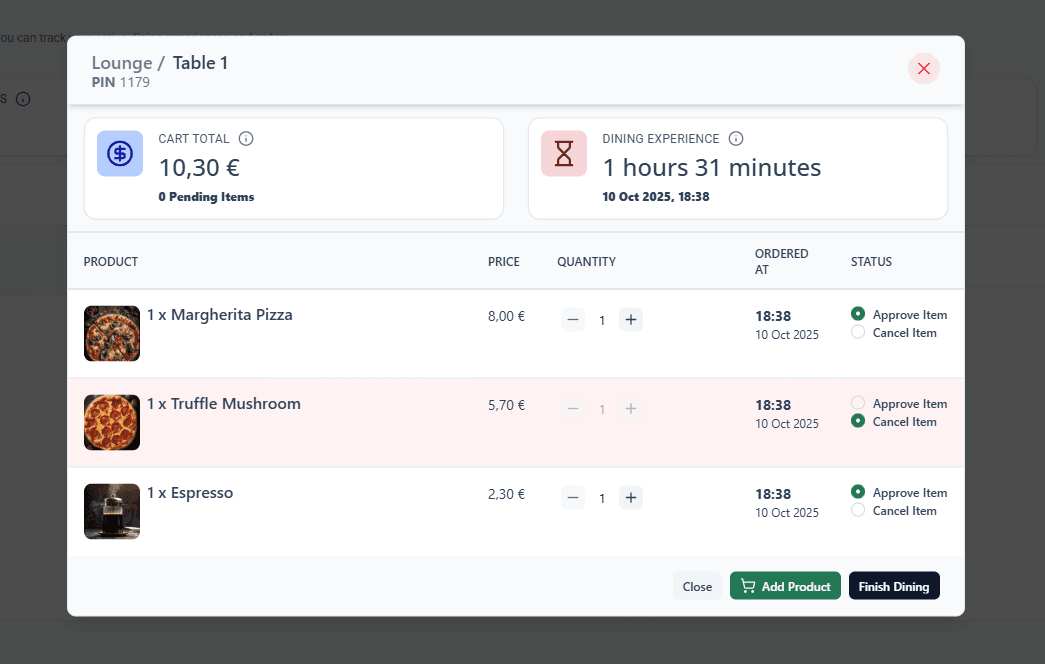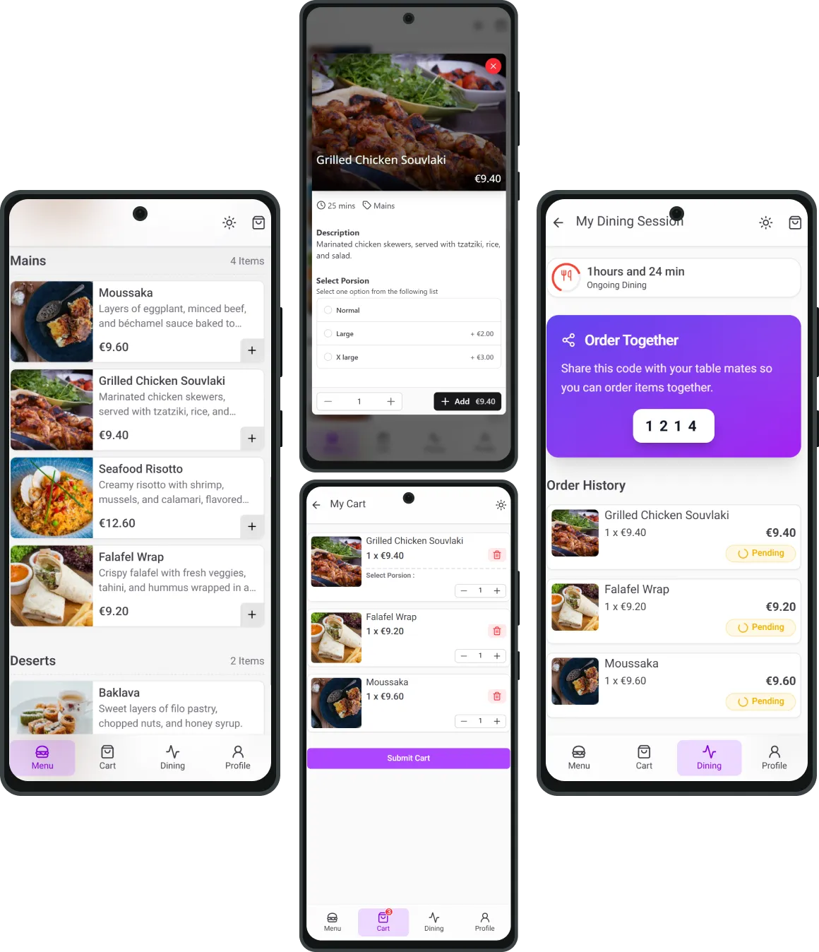 - Customers can browse menus, customize items, and send orders directly to the kitchen.